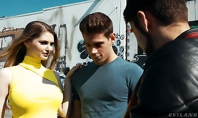 Bisexual ultra-cutie Emily Blacc goes nuts during outdoor bisexual 3some