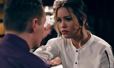 Husband watching hit chubby Latina Vivianne Desilva in undergarments tears up with bartender