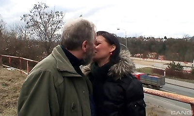 Splendid Czech pornstar gets fucked by a insane old chap outdoors