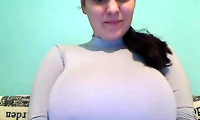Captivating big tittied teen is playing with her jugs and sugary-sweet looking puss