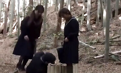 Asian gothic lolita brutally abases a schoolteacher using his mouth instead of toilet.