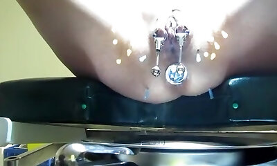 nippleringlover - horny milf masturbating, mighty weights pulling extremely pierced nipples
