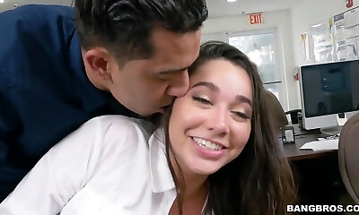 Black guy hires a white secretary and pounds her cock-squeezing cooter