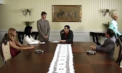 Obscene BBW secretary pleases boss and his partner in front of bodyguard