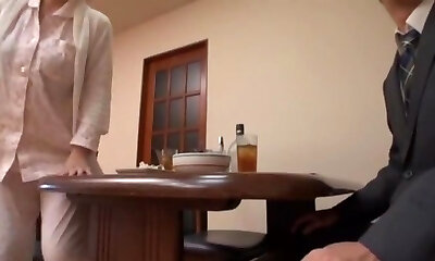 Asian Milf Fucks The Manager While Her Husband Sits At The Table!