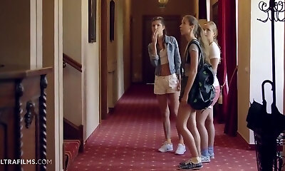 Lucky dude gets to penetrate his wife and their young nanny in the living room