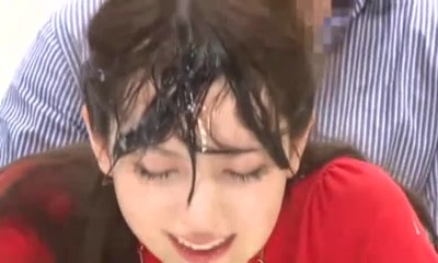 Mesmeric Japanese senorita has her face splattered with gloppy load