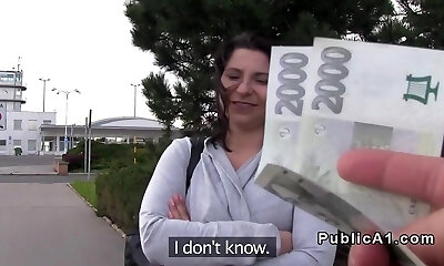 Brunet buxomy stranger gives a sucky-sucky and gets fucked for money