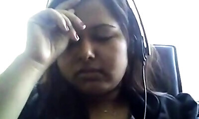 Bored Desi obese on webcam plays with her boobie