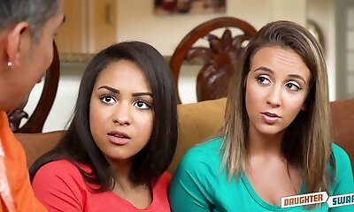 Step-father in robe showcasing his cock to pretty teen stepdaughter Brenna Sparks
