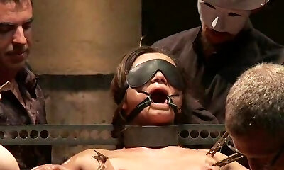 Hardcore Brunette Gets Tortured By Many Studs