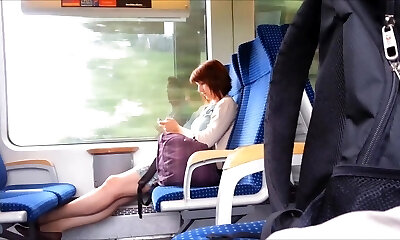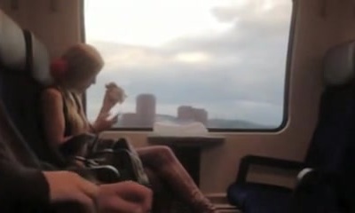 Shameless bitch Zuzinka flashes her hairless pussy in the train