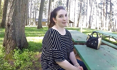 Desirable maid unsheathes her cute pair of bra-stuffers in the park