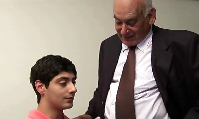 Old grey-bearded man fucks teen nymph when her own beau comes and joins