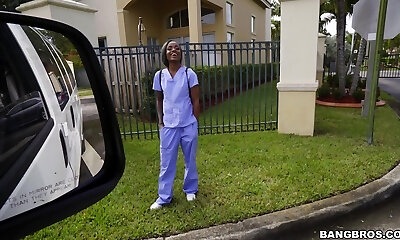 Interracial nailing in the van with ultra-cute ebony nurse Lexxi Deep