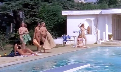Nude ladies in the pool having crazy sex fun