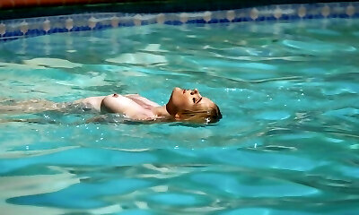 Young towheaded Sabrina Blond is swimming in the pool and making love with her beau