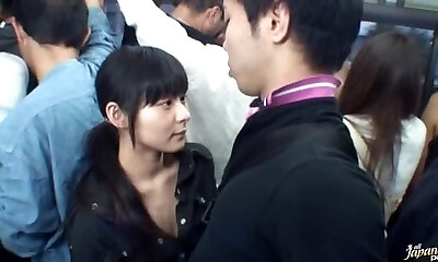 Japanese honey with meaty boobs luvs to get molested in the bus, on her way home