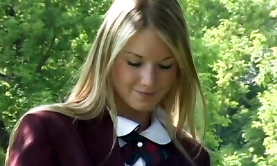 Delectable college nymph poses seductively for an glamour outdoors solo shoot